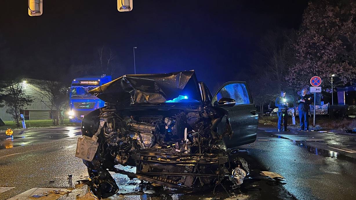 Zwei Verletzte bei Unfall in Gütersloh - Auto landet in McDonalds-Hecke