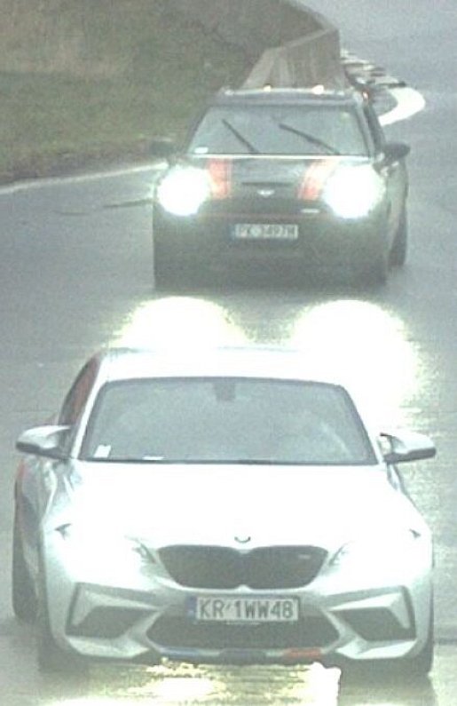 Der BMW trug das Kennzeichen KR 1 WW 48 (PL). Bei dem BMW M2 Competition handelt es sich um einen weißen Wagen in der typischen sportlichen Optik mit auffällig roten und blauen seitlichen geschwungenen Markierungen, die sich von den hinteren Kotflügeln bis zu den Türen ziehen.