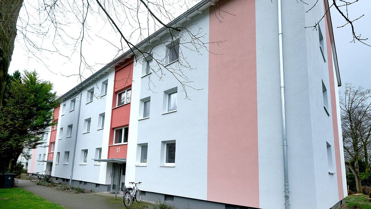 Das Mehrparteienhaus mit der Nummer 57 gehört zu den Objekten mit insgesamt 102 Wohnungen, die der LEG an der Strotheide in Gütersloh gehören. | © Andreas Frücht