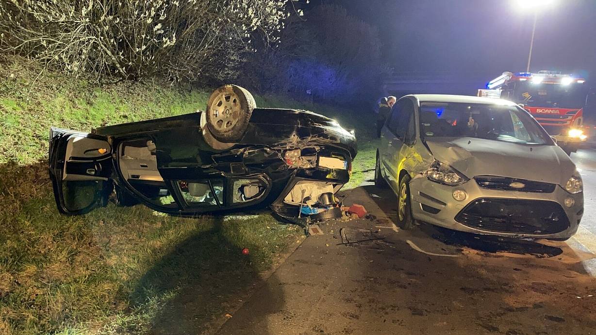 Durch ein Brems- und Ausweichmanöver überschlug sich ein BMW auf der A2 bei Gütersloh. Zuvor kollidierte der Wagen noch mit einem Ford S-Max. | © Thorsten Heß
