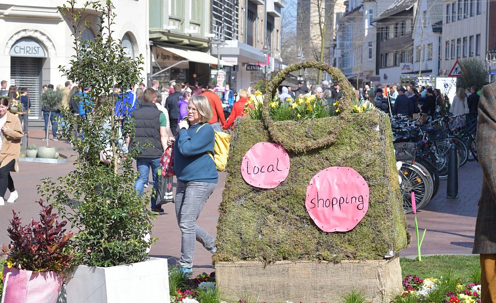 Auch die Geschäftsinhaber, die nach Aussage des Einzelhandelsverbandsvorsitzenden Rainer Schorcht eine fünfstellige Summe in die Vorbereitungen investiert hatten, wurden für ihre Mühe belohnt. Nach einem Bummel um 17.30 Uhr über den Berliner Platz vermeldete der Fotokaufmann: „Es war ein guter Start in den Gütersloher Frühling. Wir sind glücklich, dass die Bevölkerung aus dem ganzen Kreis den Weg in die Innenstadt gefunden hat“. Die Besucherfrequenz habe „das Maß angenommen, wie in der Vor-Corona-Zeit“. Ausdrücklich lobte Schorcht die ausrichtende gtm und die grüne Branche für ihre „gute Arbeit“.