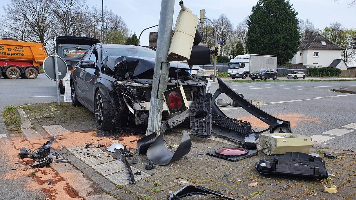 Autofahrer prallt in Gütersloh an B61 mit voller Wucht gegen Ampel