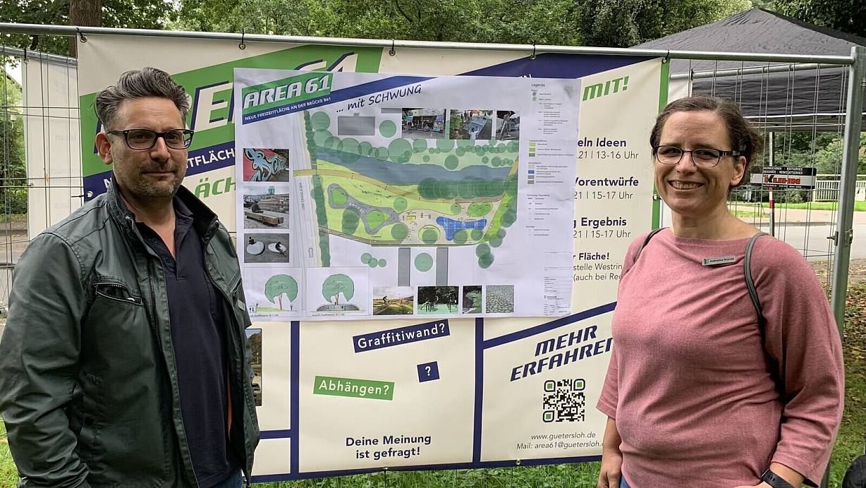 Die Landschaftsarchitekten Marco Genser und Katharina Krause sind die Planer der „Area 61" im Gütersloher Westen. | © Christian Bröder
