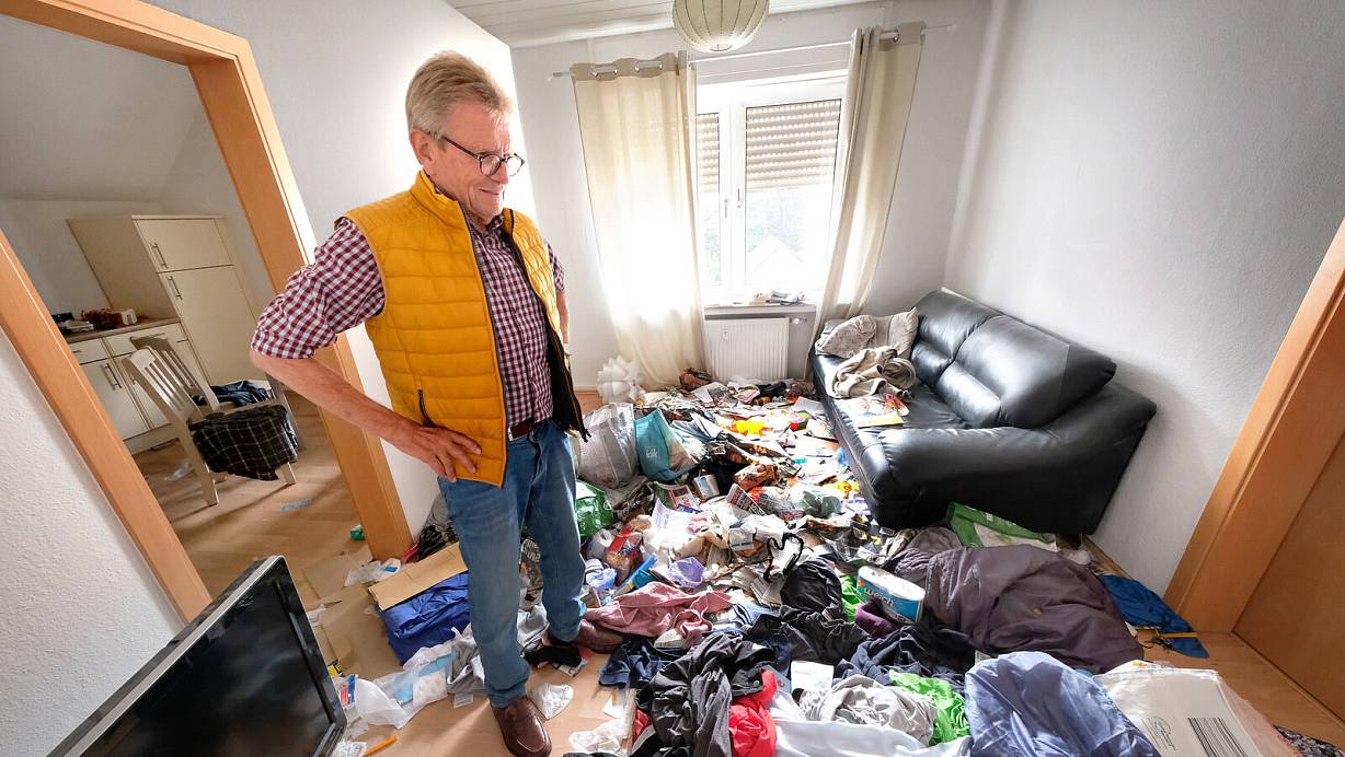 Fassungslos steht Jochen Weithöner im Müll. Das Betreten der Wohnung hat er mit Zeugen dokumentiert. | © rr