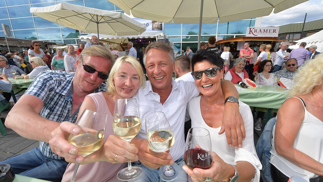 In die Reihe der Gastronomen hat sich die Taverne Ellinadiko in diesem Jahr neu eingereiht. Das Team von Wirt Theo Sargiannidis sowie die zwei neuen Weinstände Bischoffingen/Baden sowie Weingut Thielen-Feilen/Mosel ersetzen die Gaststätten „Zum Kleinen Groben“, den „Türmer“ und das „Steakhaus Mendoza“, die sich aufgrund von Mitarbeitermangel zurückgezogen haben. Schmackhaft sind indes nicht nur die von 15 Weinständen feilgebotenen flüssigen Gaumenfreuden. Auch der Blick auf die Speisekarten macht ein Besuch am Zusammenkunftsort für Freundeskreise, Nachbarn, Arbeitskollegen oder Sportgemeinschaften schon zum absoluten Muss.