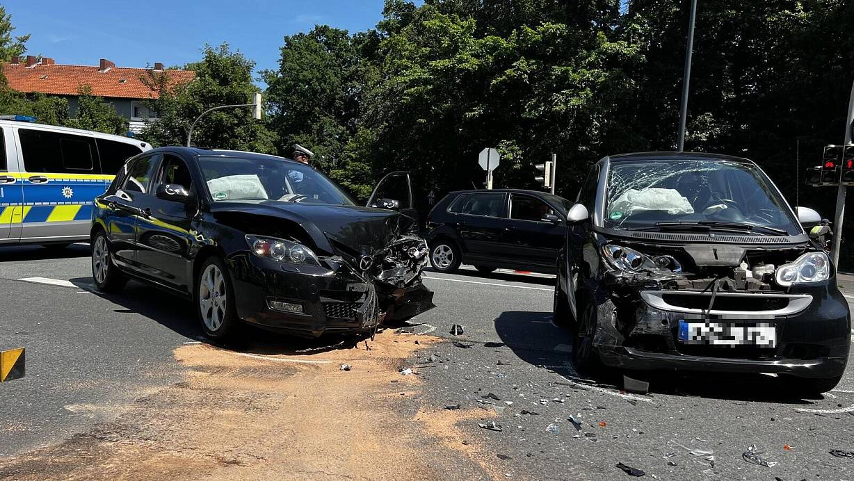 Eine 23-Jährige hatte beim Abbiegen eine ihr entgegenkommende 55-Jährige übersehen. Durch den Unfall kam es zu erheblichen Verkehrsbehinderungen.