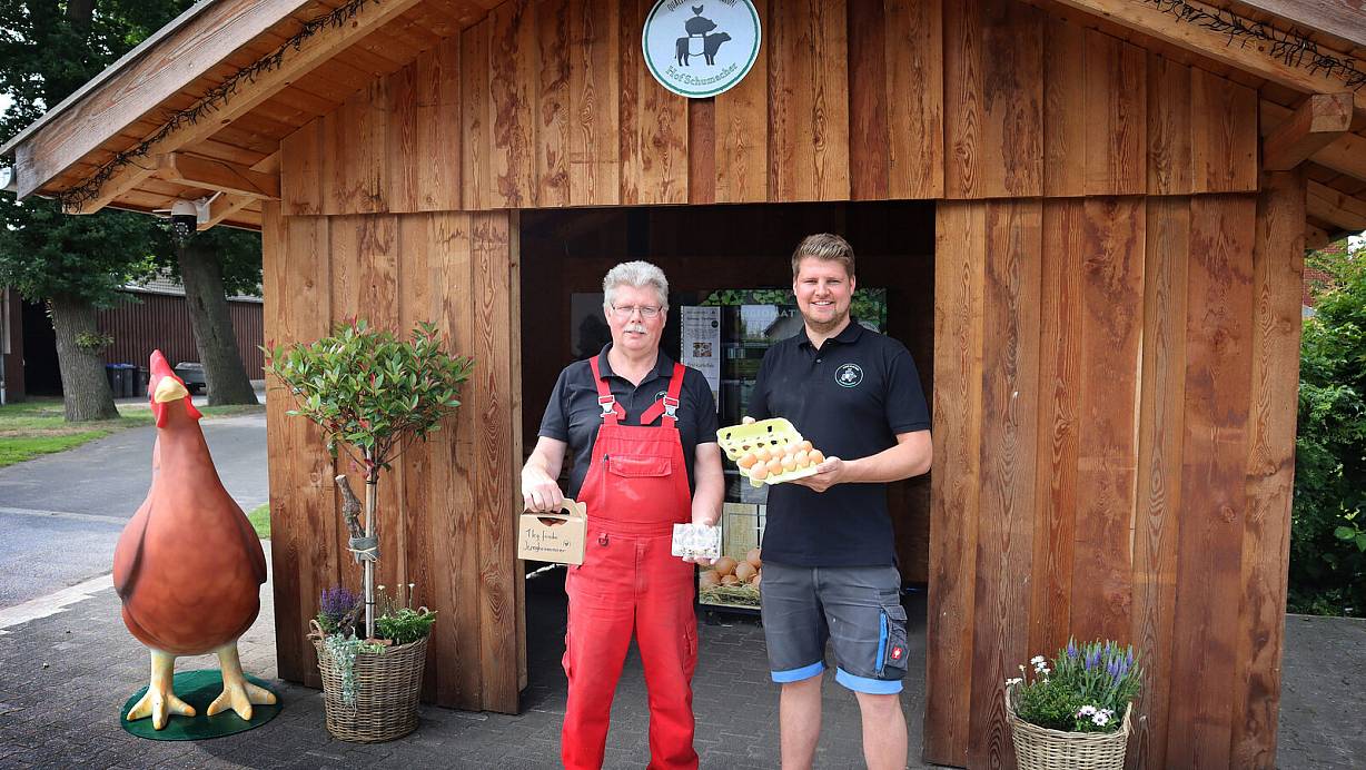 "Ausprobieren, was angenommen wird" - nach diesem Motto arbeitet der Hof Schumacher in Gütersloh. Fast alle zehn Minuten steht ein Kunde am ungewöhnlichen Eier-Automaten. Ein weiteres Projekt soll im Spätsommer umgesetzt werden.