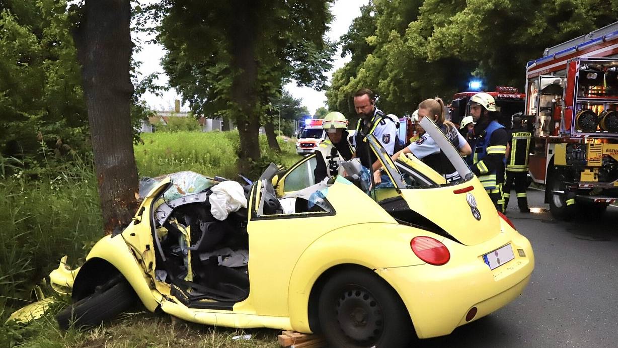 Eine 47-Jährige ist mit ihrem VW Beetle von der B61 in Gütersloh abgekommen. Die Feuerwehr musste eine sogenannte Crash-Rettung vornehmen.