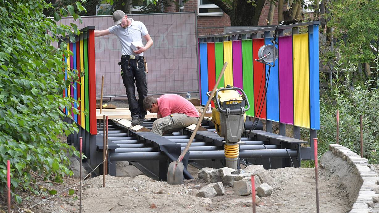 Diese neue Brücke in der Gütersloher City ist so bunt wie ein Regenbogen