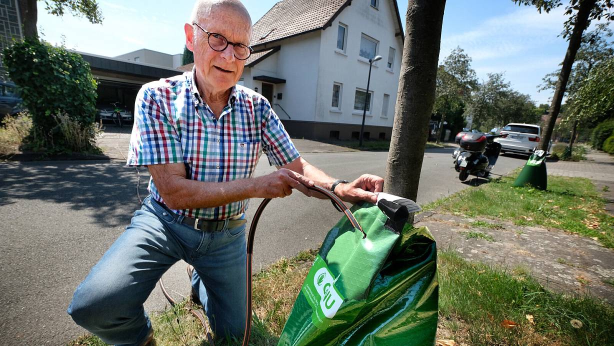 Nachbarn begeistert: Gütersloher schnürt plötzlich Wassersäcke an Bäume
