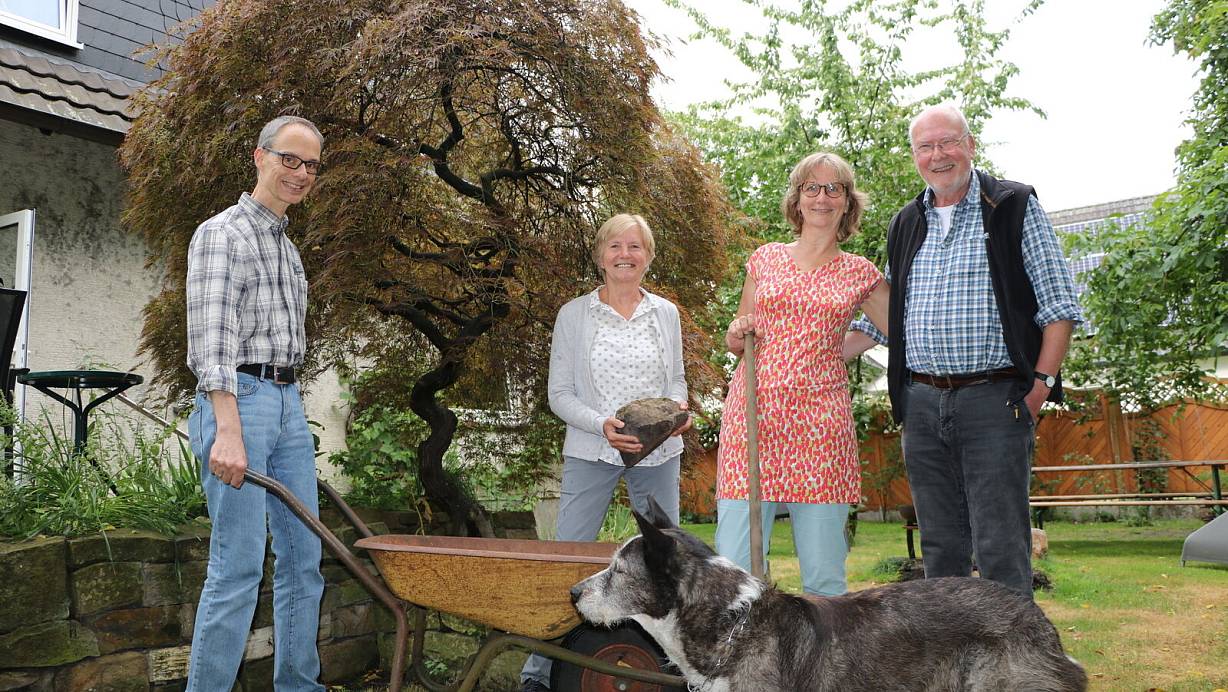 Würden lieber heute als morgen ihren Traum vom Generationenwohnen verwirklichen: Die Mitglieder des Vereins Kobel e.V. (v.l.) Matthias Bell, Birgit Kohn, Susanne Hellweg und Rolf Schmidt. Und für Kalles Hundekorb ist dann sicher auch noch Platz. | © Anja Hustert