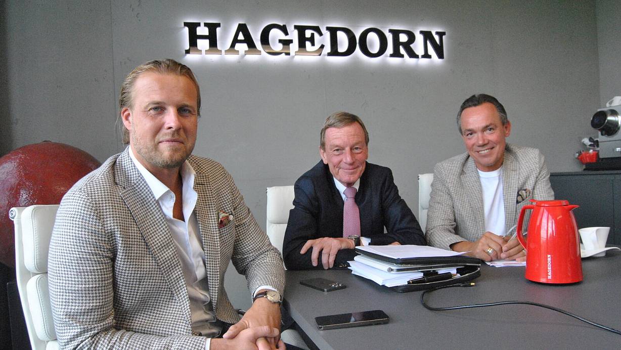 Gesprächsbereit: Geschäftsführer Rick Mädel (v.l.), Rechtsanwalt Michael Hoppenberg, Unternehmer Thomas Hagedorn. Foto: Osterkamp | © Ludger Osterkamp
