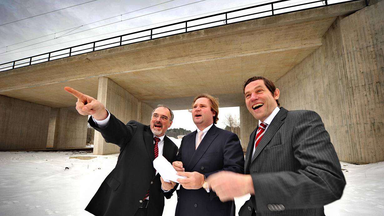 Kampf für den Lückenschluss: Der Landtagsabgeordnete Rainer Lux, Verkehrsminister Lutz Lienenkämper und Staatssekretär Günter Kozlowski (v. l.) 2010 auf der Trasse der Autobahn 33. | © BIELEFELD