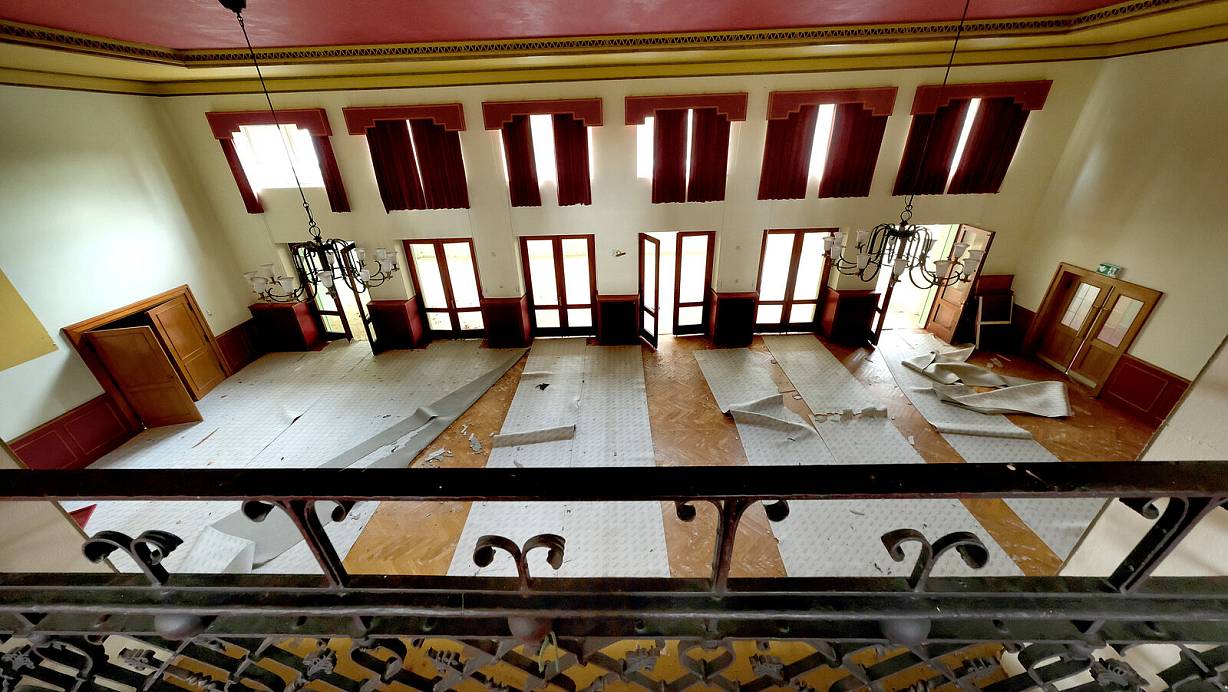 Blick von der Empore ins Offizierskasino: Der Teppich wurde schon rausgerissen, darunter ist Parkett. Es müsste saniert werden. | © Andreas Frücht