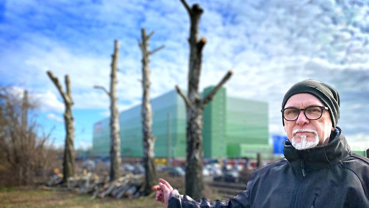 Von den vier Birken auf einem Grundstück im Gütersloher Norden sind nur noch die Stämme übrig geblieben. Mieter Michael Kisse ist sauer auf die Deutsche Bahn, in deren Auftrag die Birken abgeholzt worden sein sollen. | © Christian Bröder