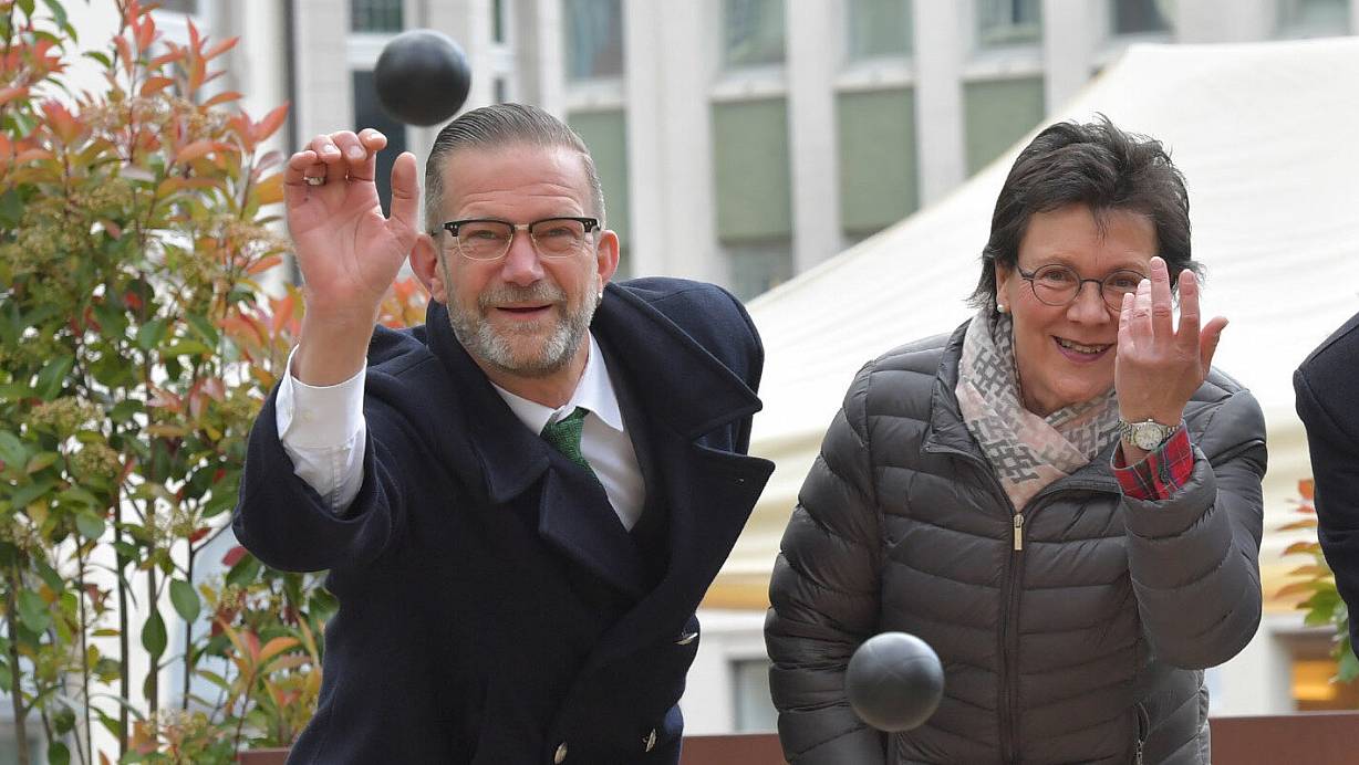 Wünscht sich neuen Schwung fürs Stadtmarketing: Gabriele Conert beim Boulespiel während des „Gütersloher Frühlings“ mit GTM-Geschäftsführer Jan-Erik Weinekötter. Archivfoto: Jens Dünhölter | © Jens Dünhölter