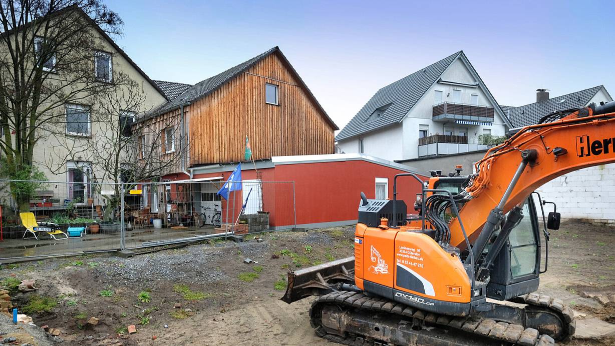 Im Wohngebiet an der Bismarckstraße in Gütersloh entsteht eine neues Mehrfamilienhaus. | © Andreas Frücht