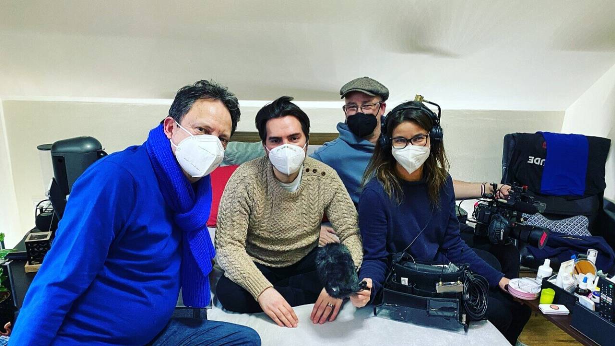 Das Kamerateam um Produzent Max Rachels (links) hat den ME/CFS-Patienten Martin Hippe (2. von links) an verschiedenen Tagen in 2022 und 2023 in Gütersloh besucht und vor Ort gedreht. | © NW