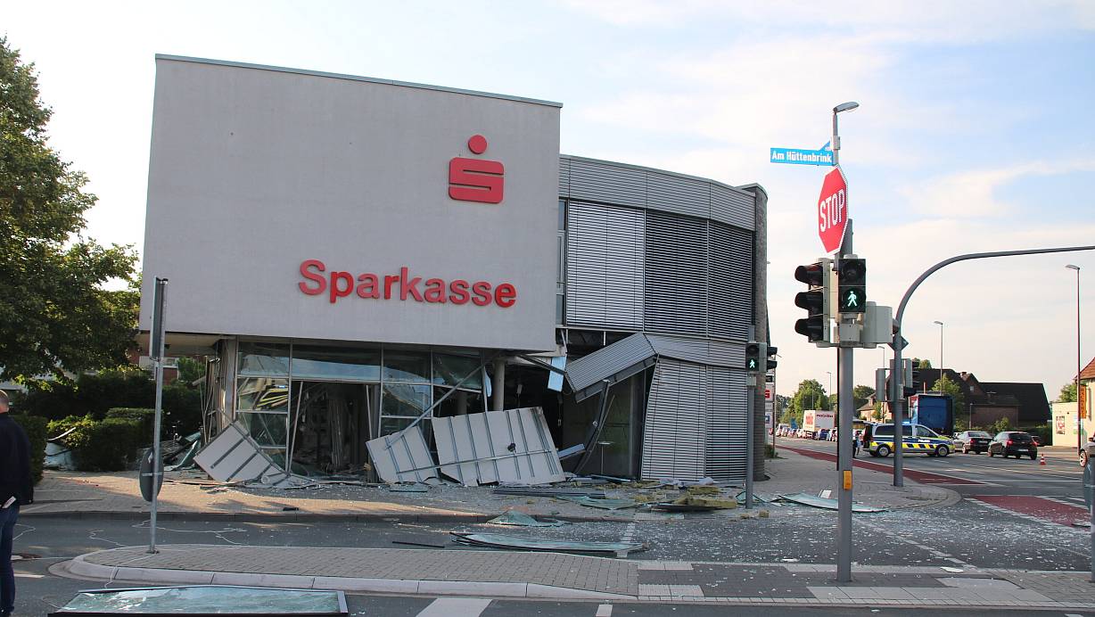 Nach der Sprengung in Gütersloh flüchten die Täter mit einem Auto. Es gibt Parallelen zur Sprengung in der Volksbank ein paar Meter weiter. Für 8.000 Menschen gibt es aktuell keinen nahen Geldautomaten.