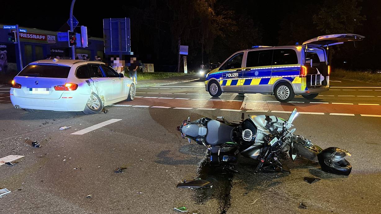 Ob die Ampel für eines der Fahrzeuge möglicherweise kein grünes Licht anzeigte, muss jetzt durch die Polizei ermittelt werden. Sowohl das stark demolierte Motorrad als auch der ebenfalls schwer beschädigte BMW Kombi wurden von der Polizei sichergestellt. Beide Fahrzeuge mussten abgeschleppt werden. Die Polizei schätzt den Sachschaden auf etwa 35.000 Euro.