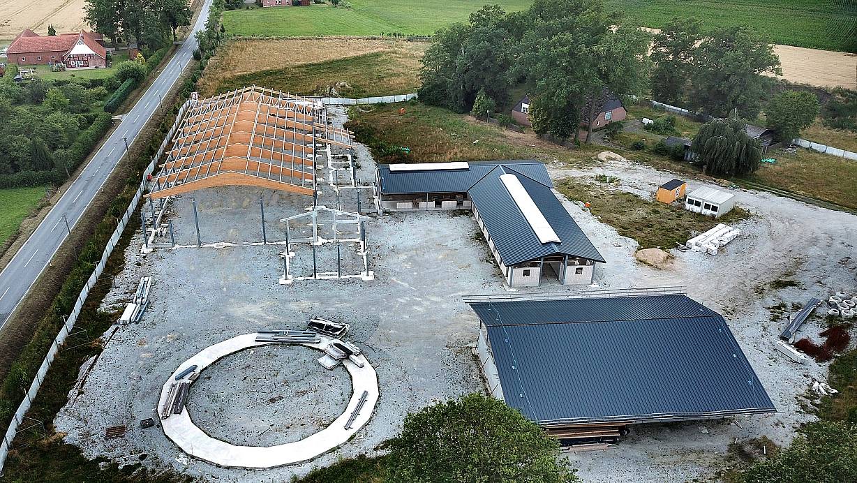 Wird die geplante Reitanlage von Barbara Hagedorn an der Brockhagener Straße 285, kurz hinter Isselhorst, jemals fertiggestellt werden? Am Mittwoch könnte bei der Verhandlung am Verwaltungsgericht Minden eine Entscheidung darüber fallen. | © Andreas Frücht