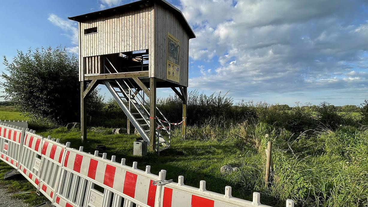Der Aussichtsturm ist seit dem Brandmorgen gesperrt. | © Tasja Klusmeyer