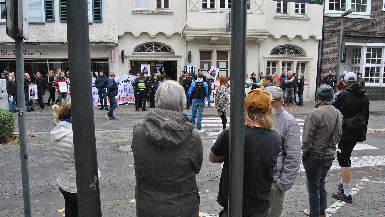 Kundgebung: Vor dem Lokal versammelten sich 70 bis 80 Demonstranten, um ihre Missbilligung des Reichsbürger-Treffens deutlich zu machen | © Ludger Osterkamp