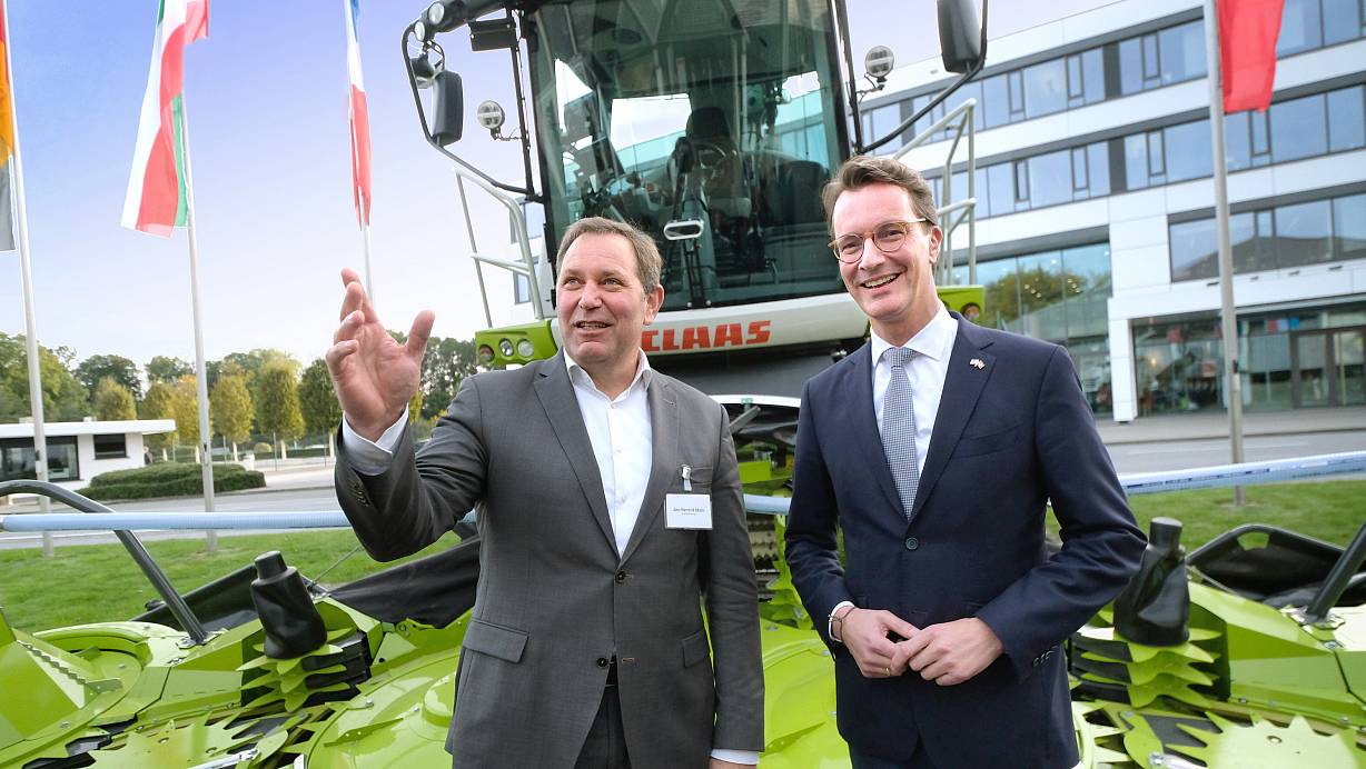 NRW-Ministerpräsident Hendrik Wüst (r.) besuchte das Unternehmen Claas mit Chef Jan-Hendrik Mohr Platz vor einigen Monaten. |