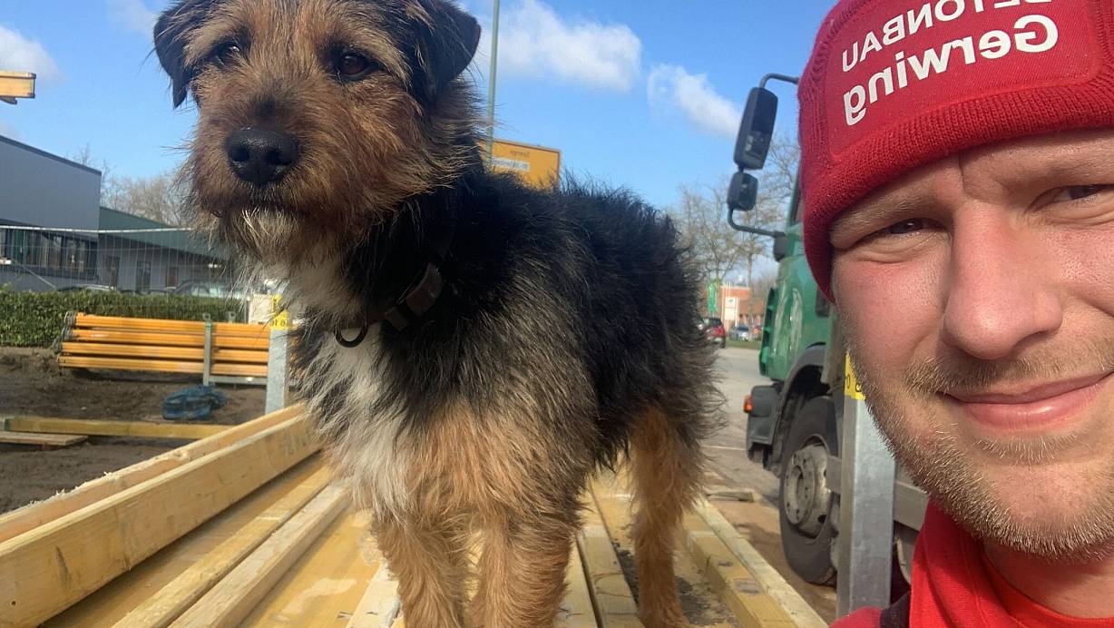 Hund und Herrchen sind happy: Bereits am Samstag, 17. Februar, - einen Tag nach dem Wiederauffinden des Vierbeiners - hat Betonbauer Daniel Tietz seinen Terriermischling "Charlie" wieder mit zur Arbeit genommen. | © privat