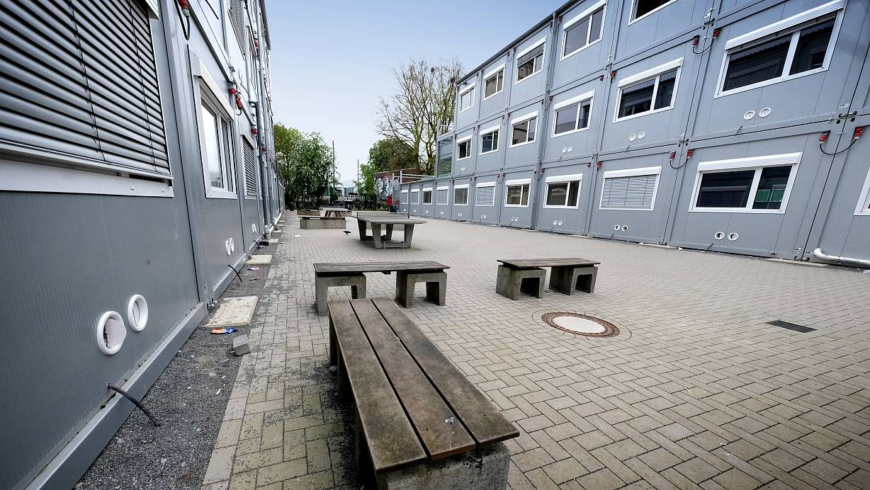 Trist: der Schulhof der Container-Schule in Gütersloh. Die provisorische Schule besteht wie das Original aus rund 50 Räumen. | © Andreas Frücht