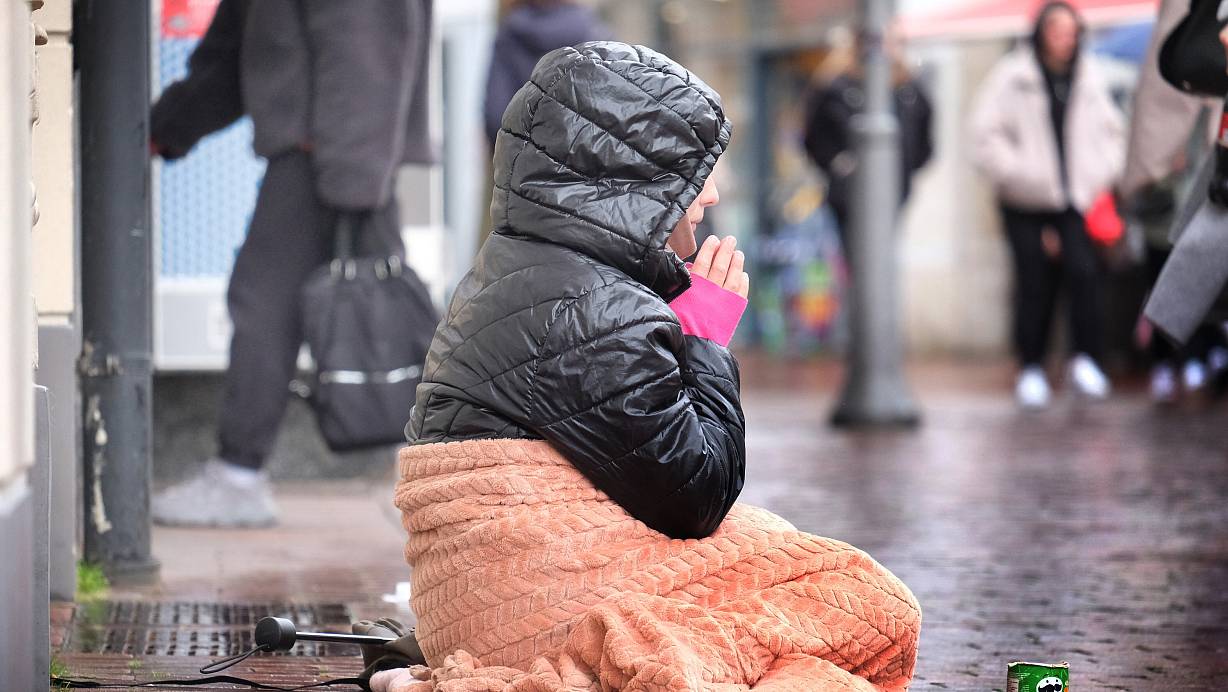 Stilles Betteln in der Gütersloher Fussgängerzone: Diese Aufnahme wurde im April in der Berliner Straße gemacht. Bei kaltem Regenwetter saß diese Frau stundenlang auf einem Handtuch und bat Passanten um etwas Kleingeld. |