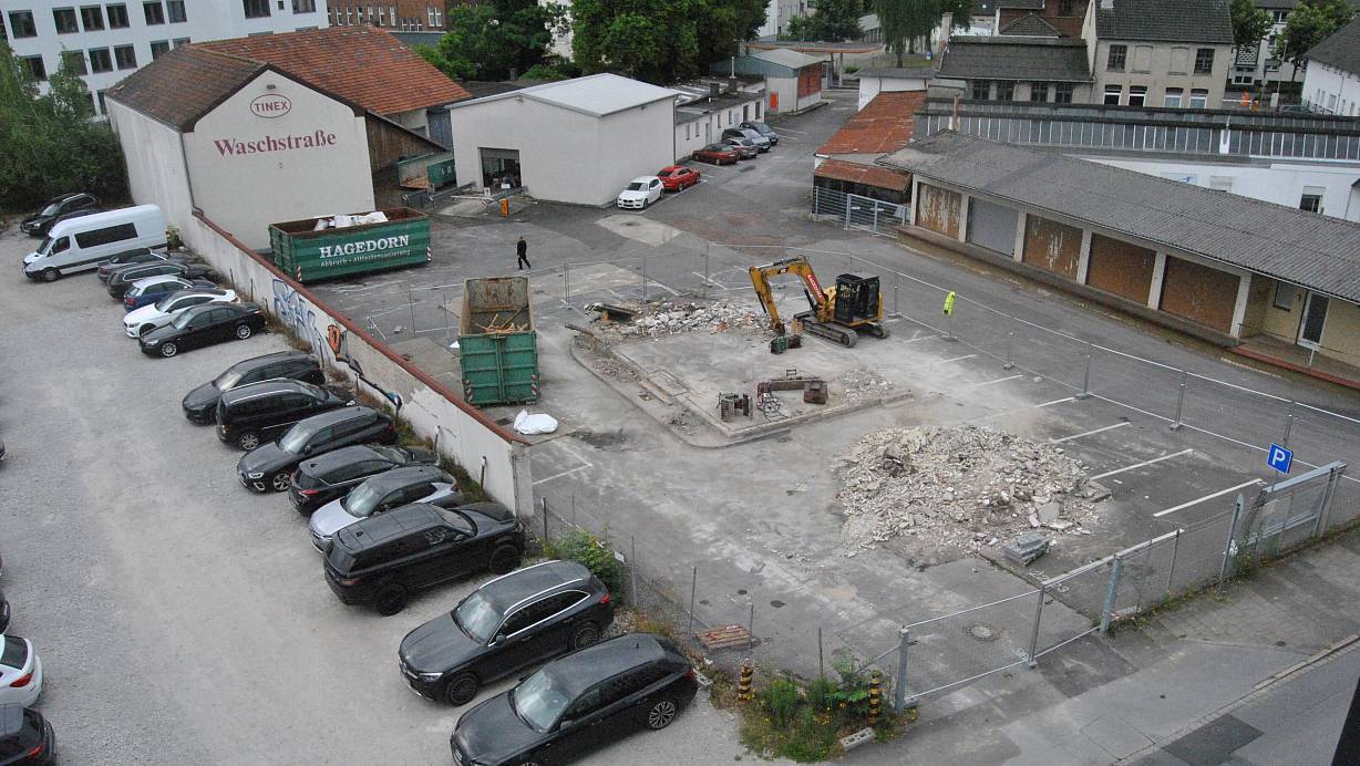 Auf dem Güth-Grundstück nahe Gleis 13 wird ein altes Bürogebäude entfernt. Es wurde gemutmaßt, dass Hagedorn das Areal gekauft hat. Das trifft jedoch nicht zu.