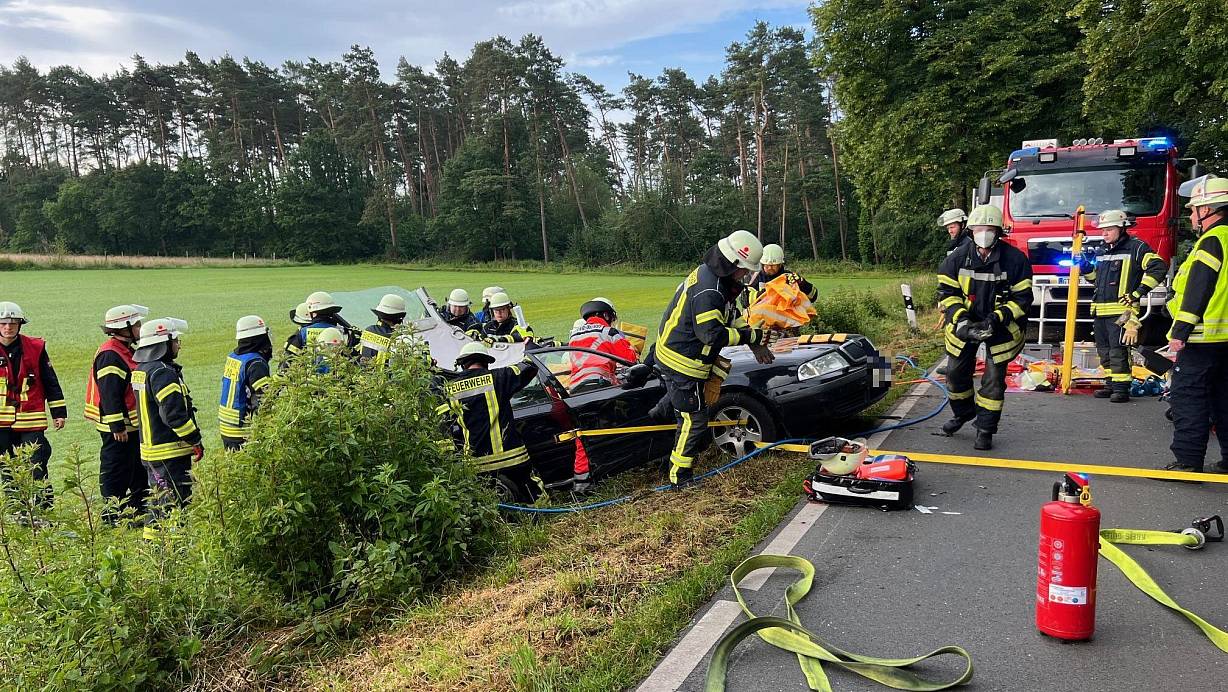 Das Auto und der Lieferwagen touchierten sich bei dem Manöver, wodurch der Pkw von der Straße abkam, mit einem Baum kollidierte und schließlich im Straßengraben zum Liegen kam. Der 33-Jährige konnte sich im Anschluss nicht mehr eigenständig aus dem Fahrzeug befreien.
