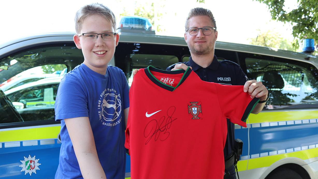 Die Polizei hatte im Netz nach dem Besitzer eines portugiesischen Trikots gesucht - der war auch rasch gefunden. Bei der Übergabe gab es noch eine Überraschung.