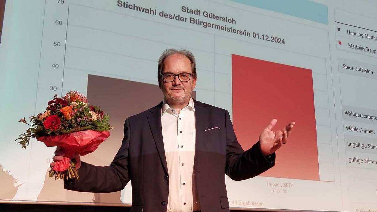 Die Entscheidung ist gefallen: Matthias Trepper (SPD) gewinnt die Bürgermeister-Stichwahl in Gütersloh mit deutlichem Vorsprung. Hier gibt es alle wichtigen Infos und die ersten Fotos.