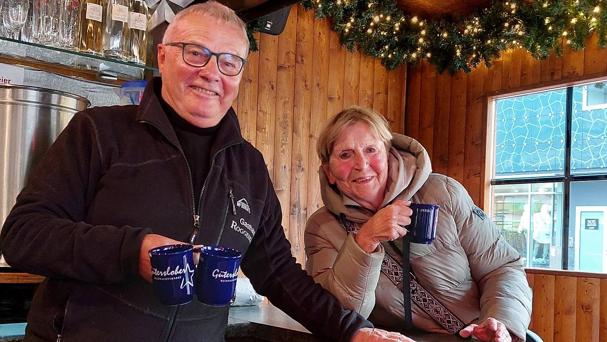 Norbert Lochthofen - von den meisten nur "Hölzi" genannt - schenkt seit 1997 Glühwein in Roggi’s Glühweinstübchen aus. Diesmal besucht ihn seine Frau Gerda. | © Dana Thoeren