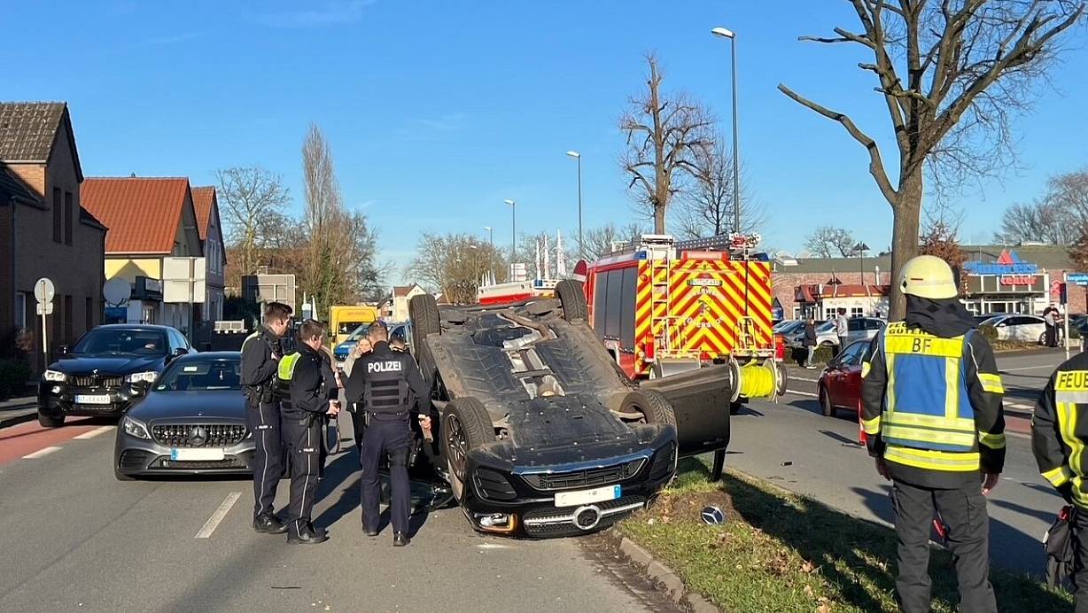 Der Mercedes GLB begann daraufhin zu kippen und blieb anschließend auf dem Dach liegen. Der 56 Jahre alte Fahrer konnte sich selbstständig aus dem Fahrzeug befreien; er zog sich leichte Verletzungen zu und wurde nach einer notärztlichen Behandlung vor Ort vorsorglich in ein Gütersloher Krankenhaus transportiert.