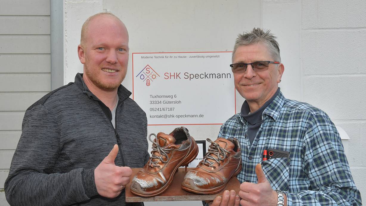 Christian Westerhelweg (57, r.) hat den gleichnamigen Heizungs- und Sanitärbetrieb an seinen Nachfolger Christopher Speckmann übergeben. | © sport/presse/foto Dünhölter