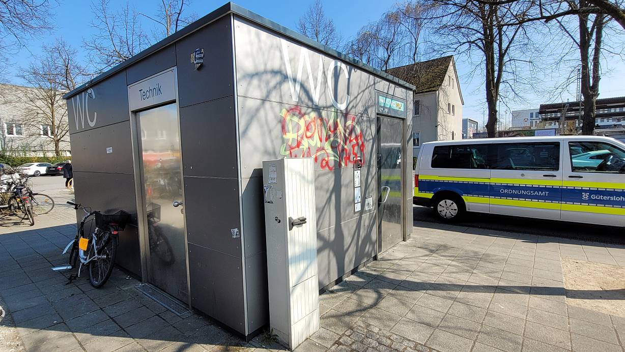 Gütersloh. Die Entscheidung ist gefallen: Die Bahnhofs-Toilette auf dem Vorplatz des Gütersloher Hauptbahnhofs bleibt dauerhaft geschlossen. Als Grund nennt die Stadt jetzt die ständigen Fälle von Vandalismus. Auch die erheblichen Verschmutzungen und die Beschwerden seien ein Thema. Die Toilette war erst vor drei Jahren aufgestellt worden. Sie hatte nach Angaben der Stadt 165.000 Euro gekostet.