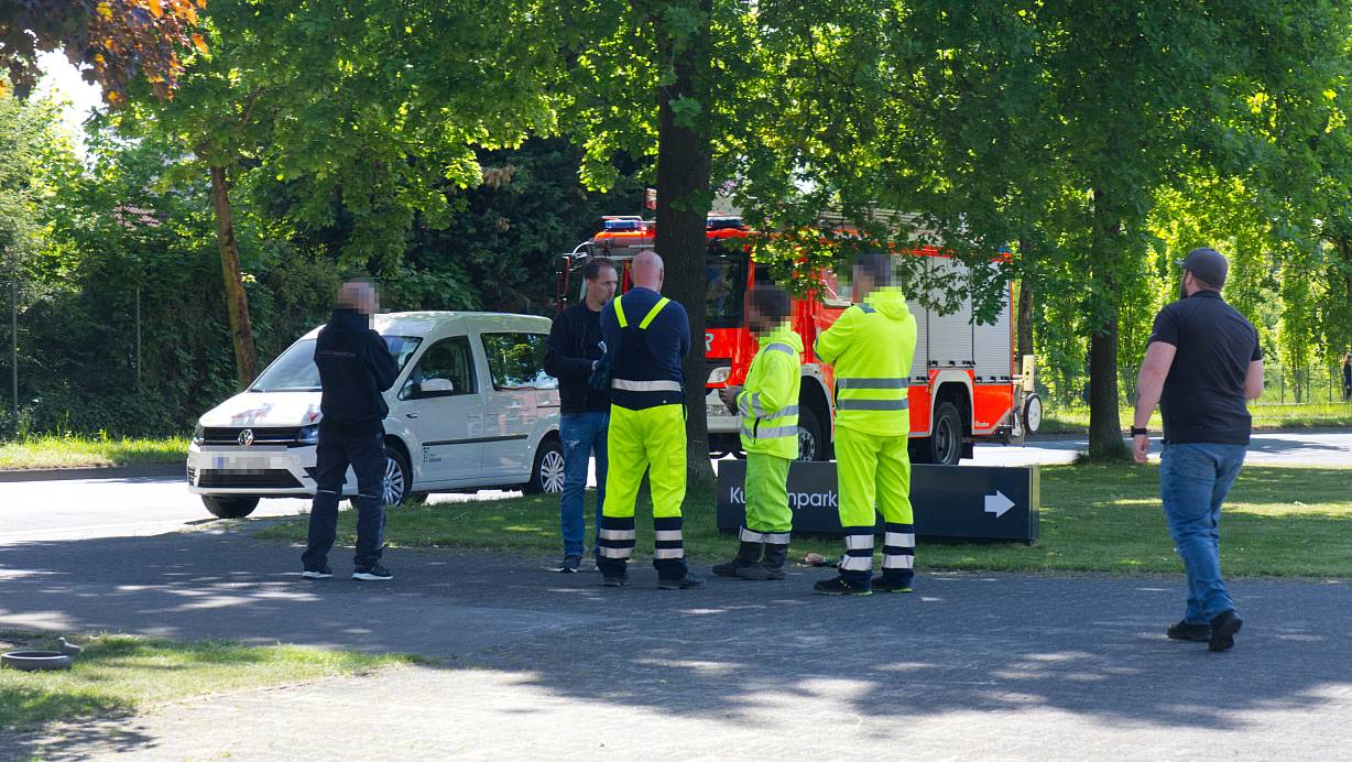 Die Feuerwehr Gütersloh rückte aufgrund von beißenden Gerüchen wieder einmal in das Industriegebiet Nord aus. Unternehmer Florian Gnegel (2. von links) unterhält sich mit Mitarbeitern der Kanalbetriebe. | © Privat