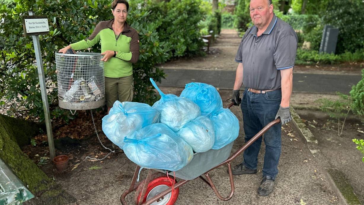 Unbekannte werfen auf einem Gütersloher Friedhof seit einer Woche fast täglich übel riechende Säcke mit Senioren-Windeln weg. Die Gemeinde greift jetzt zu einer drastischen Maßnahme.