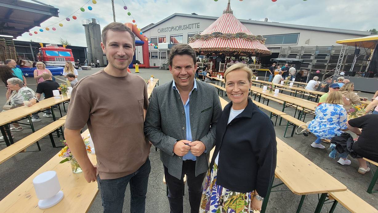 Zeit für ein Dankeschön: Das Unternehmerpaar Christian Pahls (Mitte) und Ursula Pahls richtete den Mitarbeitern, die sich für den Neustart der Gießerei sehr ins Zeug legen, ein Betriebsfest aus. Betriebsleiter Felix Schöne, der vor Ort die Geschäfte führt, ist ebenso wie die Belegschaft erleichtert über die Rettung des Betriebes. | © Ludger Osterkamp