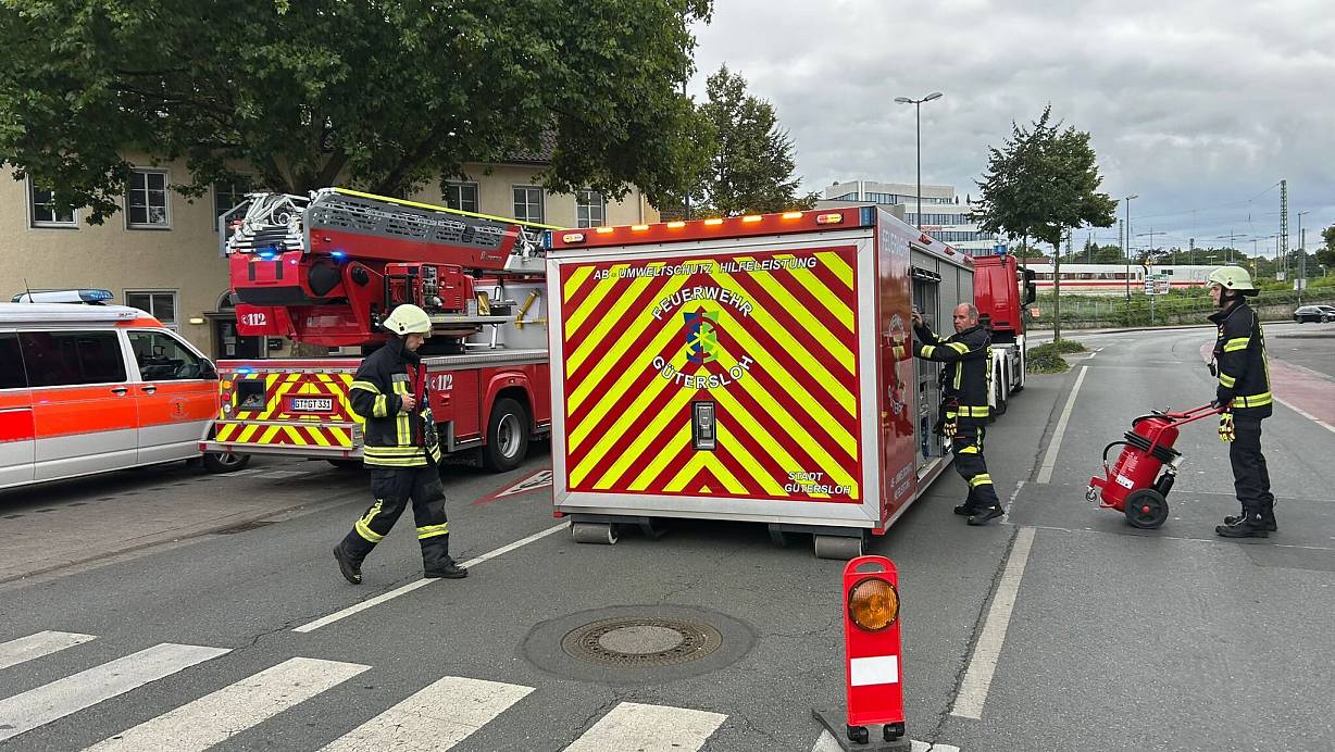 Großeinsatz der Feuerwehr am Gütersloher Bahnhof: ICE meldet Brandgeruch im Bord-Bistro