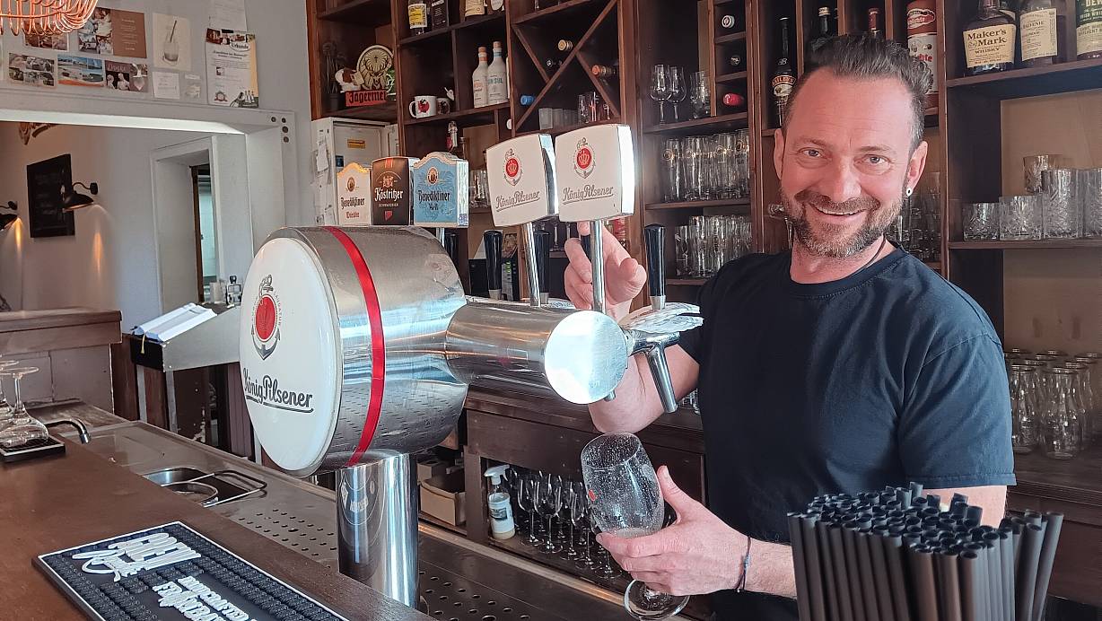 Sascha Vogt am Tresen in seinem geliebten "Wohnzimmer" in Gütersloh Am 23. Dezember wird er dort das letzte Mal den Zapfhahn bedienen. | © Amelie Halstenberg
