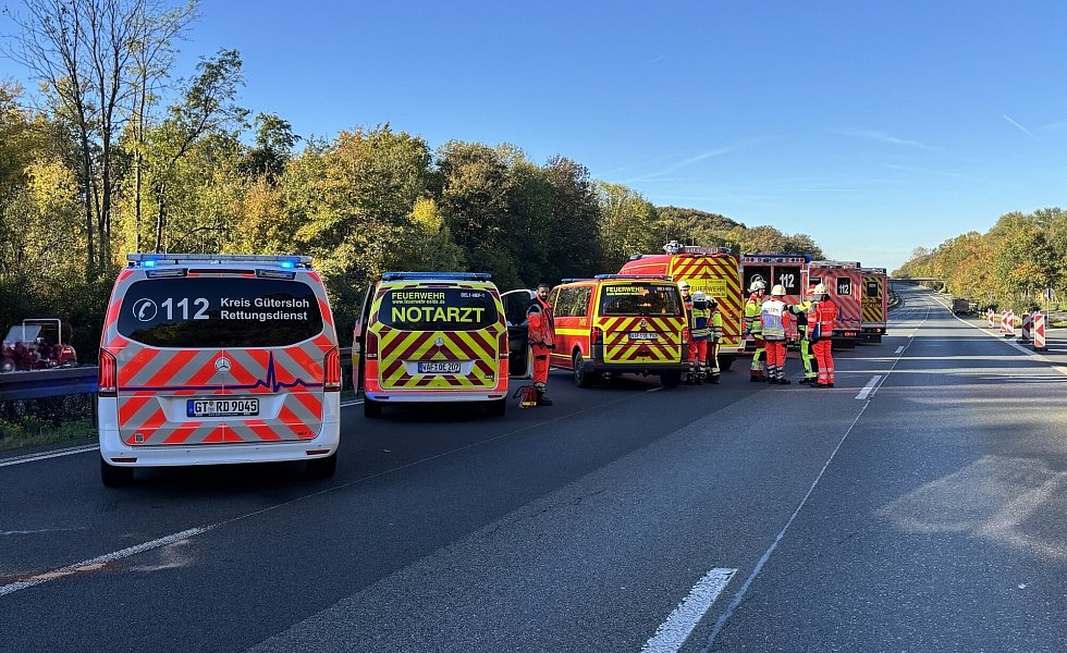 Alle Unfallbeteiligten wurden bei den Kollisionen leicht verletzt und in Krankenhäuser gebracht. Sowohl der Löschzug Oelde unter Leitung von Rolf Vennewald als auch der Rettungsdienst und die Feuerwehr aus Gütersloh waren auf der Autobahn im Einsatz; auch ein Rettungshubschrauber wurde angefordert.