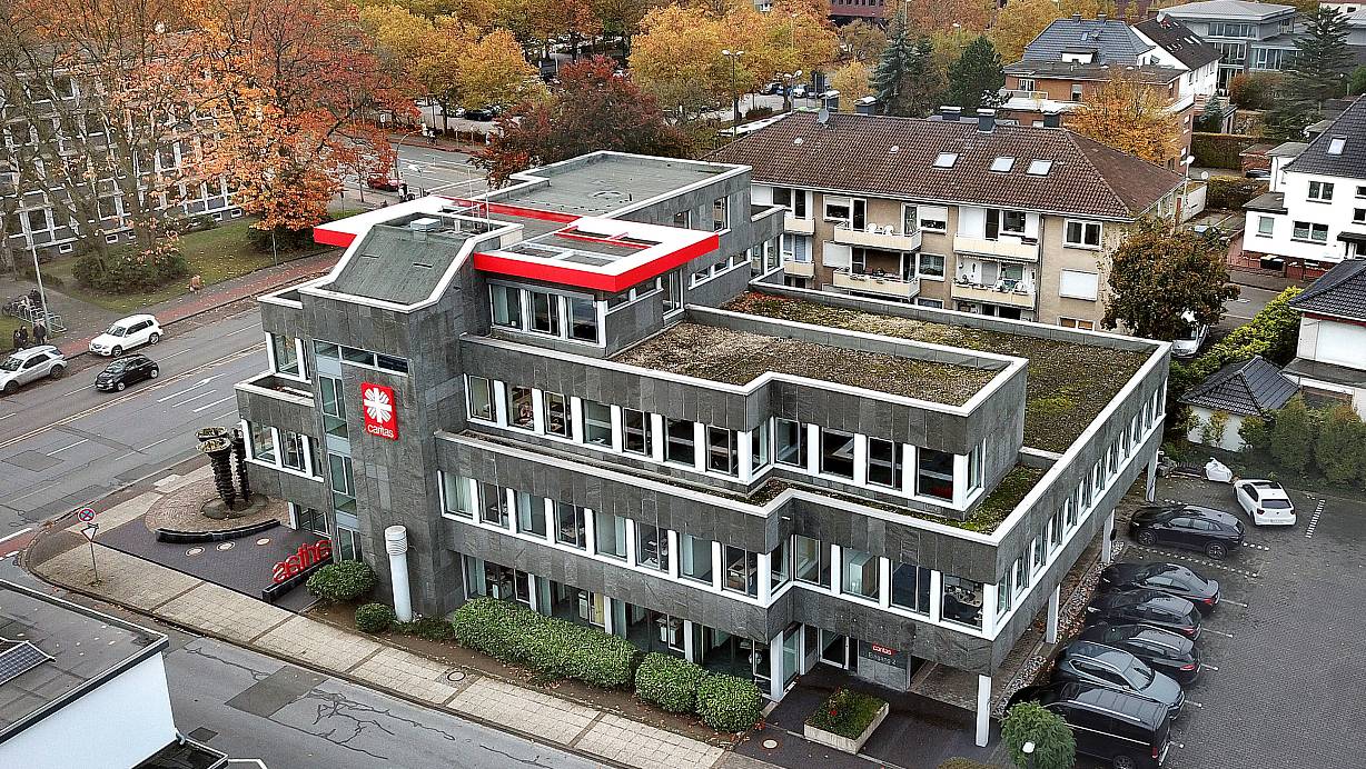 Ein rotes Dach als sichtbares Markenzeichen: Die Caritas an der Friedrich-Ebert-Straße gegenüber vom Amtsgericht. | © Andreas Frücht
