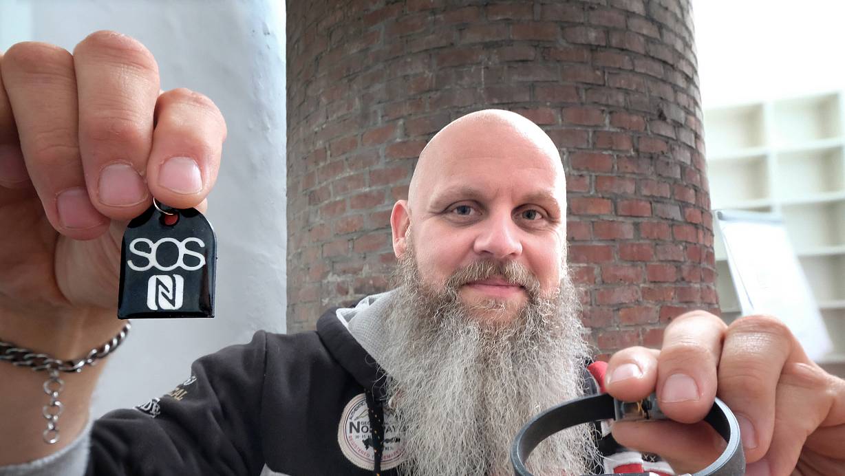 Daniel Vagner baut in seiner 30-Quadratmeter-Wohnung in Gütersloh besondere Armbänder und Anhänger, die im Notfall lebenswichtig sein können.