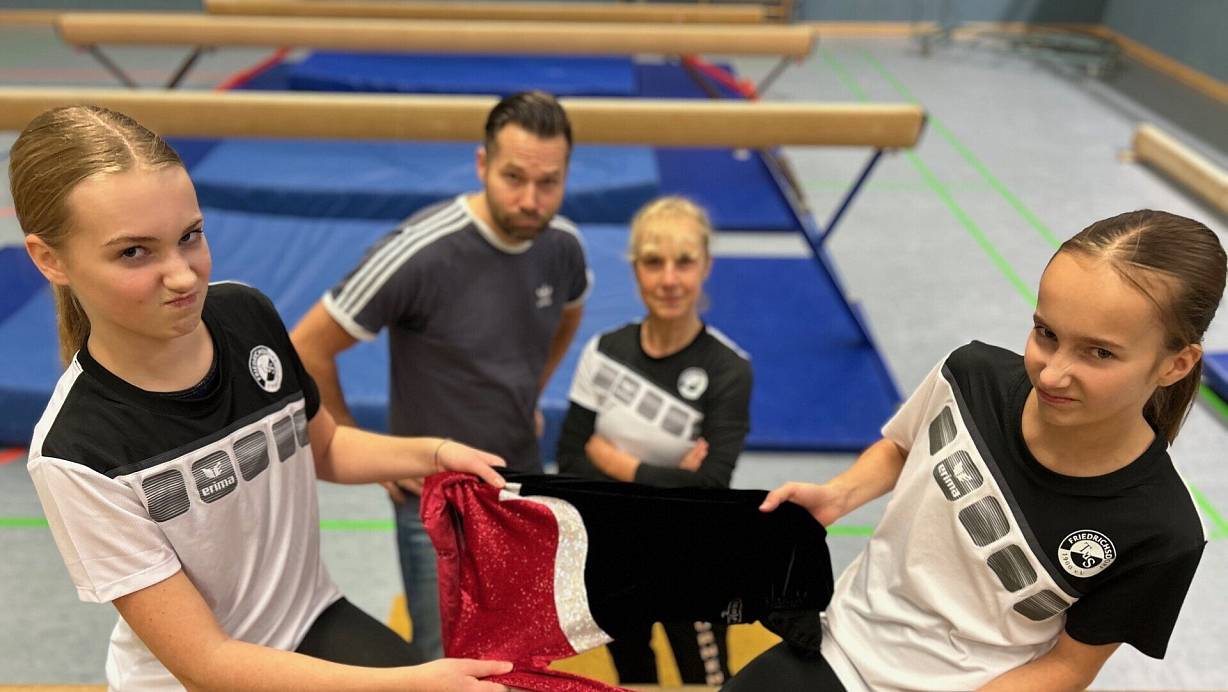 Weil die Wettkampfanzüge der Friedrichsdorfer Turnerinnen um Sienna Burger (links) und Johanna Kleeberg zwischen 18 und 20 Jahre alt sind, haben ihre Eltern eine Spendenkampagne für neue Outfits organisiert. | © Christian Bröder