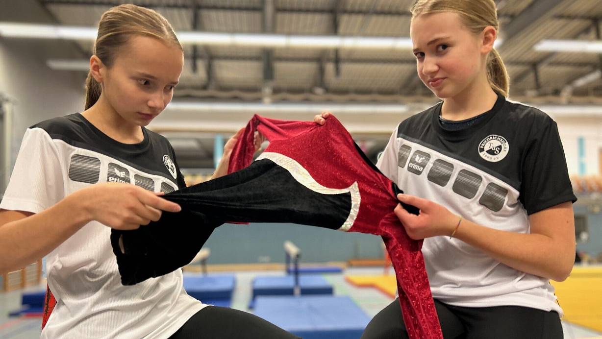 Weil die Wettkampfanzüge der Friedrichsdorfer Turnerinnen um Sienna Burger (links) und Johanna Kleeberg zwischen 18 und 20 Jahre alt sind, haben ihre Eltern eine Spendenkampagne für neue Outfits organisiert. | © Christian Bröder