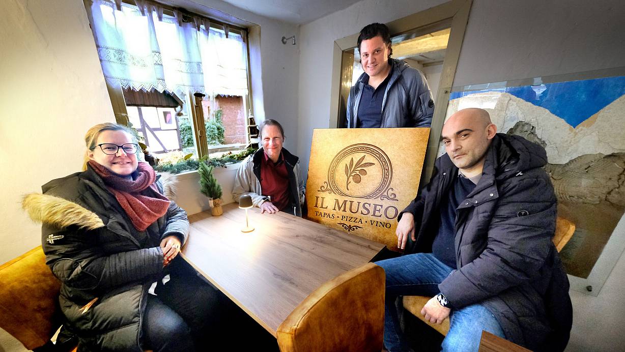 Aus dem Museumscafé wird "Il Museo": Über den Neustart freuen sich (v.l.) Ann-Kathrin Brambrink und Franz Jungbluth vom Heimatverein, Pächter Manuel Schubert und Betriebsleiter Samir Hadzic. | © Andreas Frücht